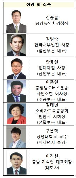 각 부문별 대표로는 ▲발전부문 한국서부발전 김병숙 사장 ▲산업부문 현대제철 안동일 대표이사 ▲수송부문 충청남도버스운송사업조합 이준일 이사장 ▲생활부문 소비자교육중앙회 김태년 천안시 지회장 ▲행정부문 양승조 지사가 참여했다.