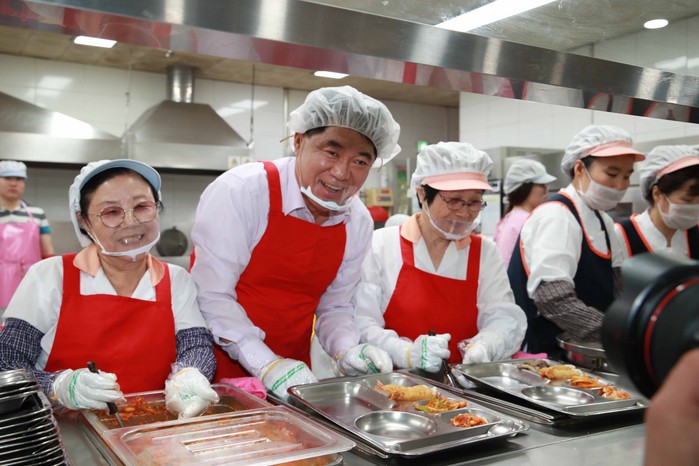 이어, 오전 11시에 관악노인종합복지관을 찾아 500여 명의 어르신들에게 배식봉사를 실시하고, 거동불편 어르신들에게는 식판을 대신 나르며 말벗이 돼드리는 등 정겨운 시간을 보내기도 했다.
