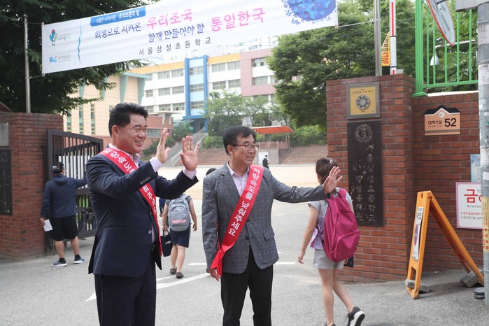 먼저, 지난 1일 학생들의 등교가 한창인 오전 8시, 박준희 구청장은 서둘러 삼성초등학교 통학로를 찾았다.