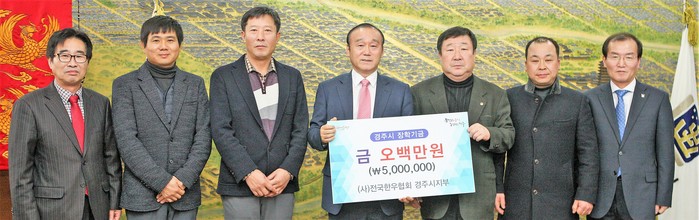 [환경데일리 이수진 기자](사)전국한우협회경주시지부(지부장 장상규)와 (사)한국낙농육우협회경주시지부(지부장 오용관)는 23일 경주시를 찾아 지역 후학 양성에 써 달라며 각각 장학금 500만원과 300만원을 경주시장학회에 기탁했다.