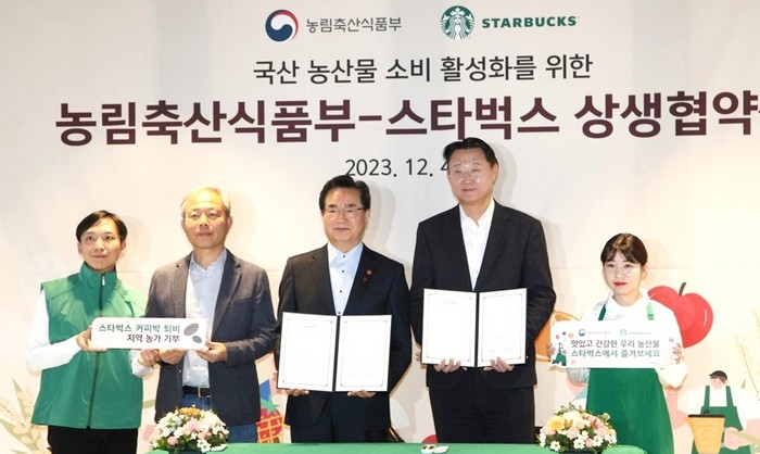 스타벅스 코리아가 4일 농식품부(정황근 장관)와 함께 국산 농산물 소비 활성화 상생 협력 업무 협약했다.