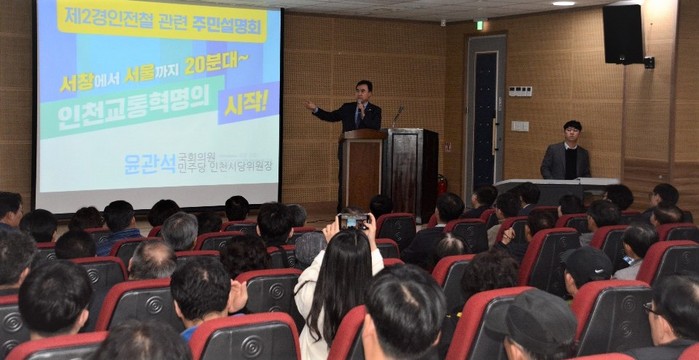 이와 관련, 더불어민주당 인천시당위원장 및 국토교통위 여당 간사를 맡고 있는 윤관석 의원(인천남동을)은 서창2동 아파트연합회가 주최한 제2경인전철 관련 주민설명회에 발표자로 참석했다.