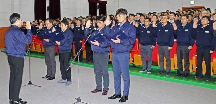 현대로템은 15일 창원공장에서 전사 임원, 각 주요부서 팀장 및 직원 등 300여명의 임직원들이 모인 가운데 경영쇄신을 위한 비상경영 선포식을 개최했다고 16일 밝혔다.