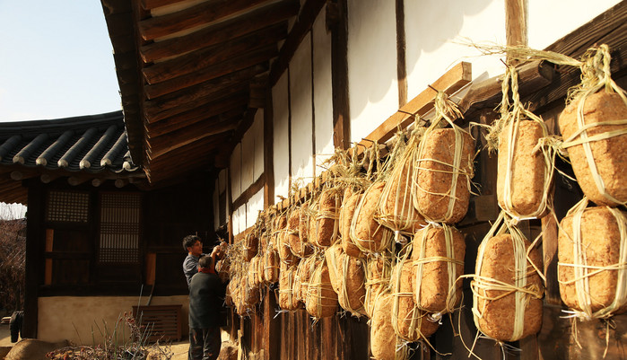 [환경데일리 이수진 기자]전남 구례군 토지면에 있는 고택 운조루에서 9대 종부 이길순 어르신과 10대 종손인 류정수 씨가 전통 방식으로 만든 메주를 겨울 햇살에 말리기 위해 매달고 있다.