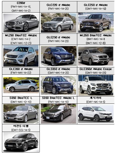 ▲벤츠, 닛산, 포르쉐 수입디젤차종이 배츨가스 등 임의도로 조작해 국내에 판매해 적발됐다. |