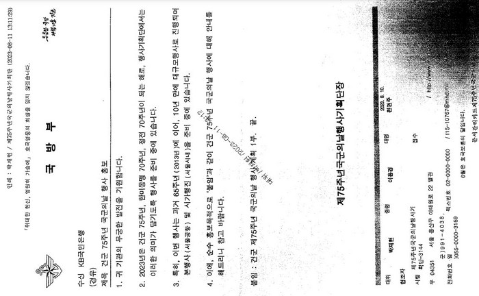 이에 대해, 예비역 장성 출신 A모씨는 "내가 알기로는 국군의날 행사 관련 민간기업 등으로부터 후원 요청을 들어본 적이 없다."고 언급했다.