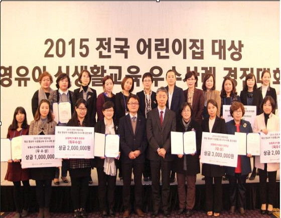 최우수상을 받은 KT꿈나무 어린이집(경기 성남시)과 신기어린이집(경기 안양)은 사계절 텃밭 활동과 수확물을 활용 아이들 편식을 줄이고, 특히 학부모 식습관 지도교육, 학부모 영양도서 대출, 가족밥상 사진전, 부지런한 어미새 선정 등 가정에서의 식생활교육의 중요성을 강조했다.