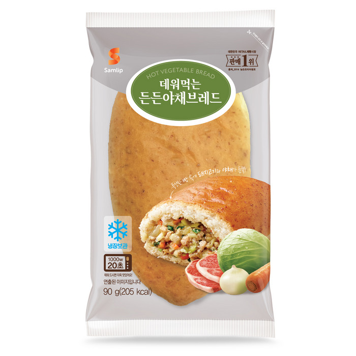 데워먹는 든든야채브레드는 부드러운 빵 속에 담백한 돼지고기와 아삭함이 살아있는 야채를 듬뿍 채운 조리빵이다.