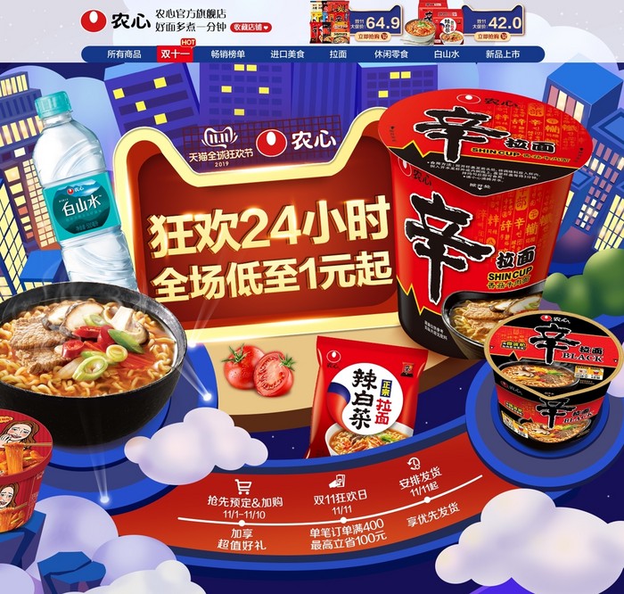 농심 관계자는 "알리바바 타오바오몰, 징동닷컴 등 중국 내 대표 온라인 채널에서 신라면을 비롯한 인기 브랜드의 판촉과 마케팅을 집중했다."고 전했다.