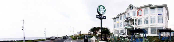 2014년 9월에 오픈한 제주용담DT점은 커피업계 최초의 제주도내 드라이브 스루 매장으로 제주시 용담동에서 이호동까지 이어지는 드라이브 코스로 유명한 용담 해안도로에 위치해 매장 전면에서 해변가를 한 눈에 조망할 수 있다. 하얀색 톤의 지중해풍 디자인을 바탕으로 조개 껍데기 문양과 제주 돌담 등 지역사회 특성을 담은 인테리어가 특징이다. 특히, 매장 내에서 구경하는 일몰 풍경이 일품이라고 하니, 잠시 쉬어가는 것도 추천한다.