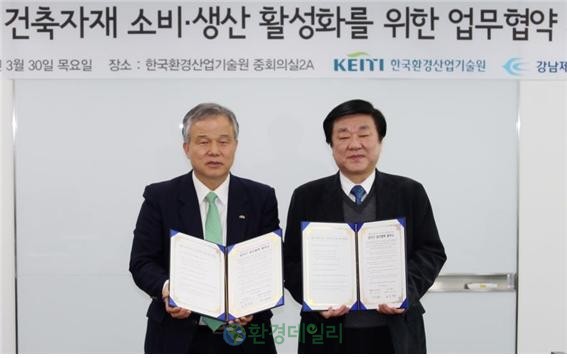[환경데일리 최인배 기자]KEITI는 친환경 건축자재 소비 및 생산 활성화 차원에서 강남제비스코가 업무협약(MOU)을 체결했다.