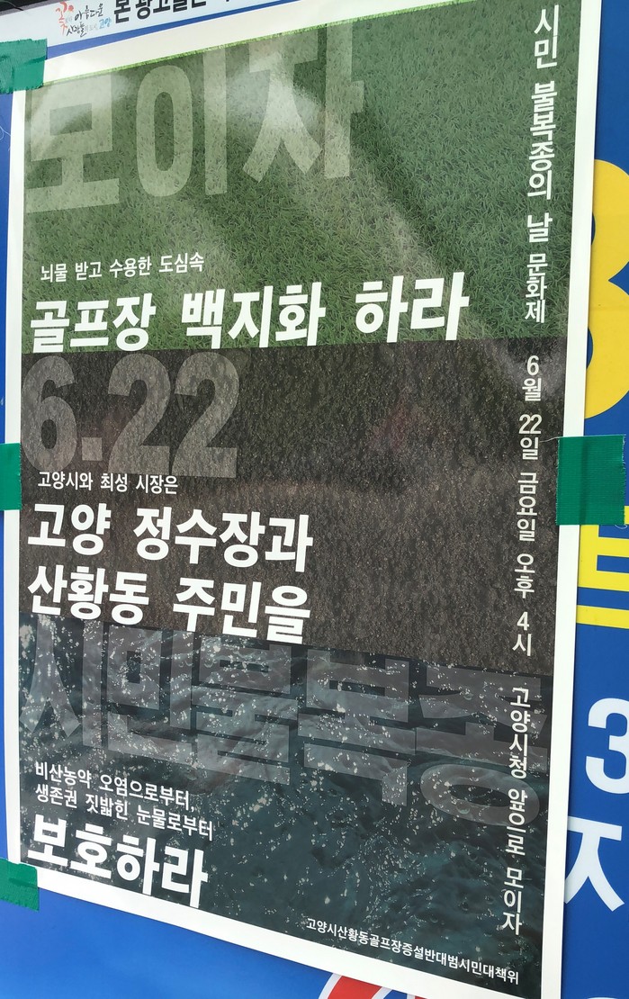 현재 고양시는 고양, 파주 시민 150만 명이 이용하는 고양정수장으로부터 직선거리로 300m가 채 안 되는 산황산에 8만평 규모의 골프장 증설을 추진 중이다.