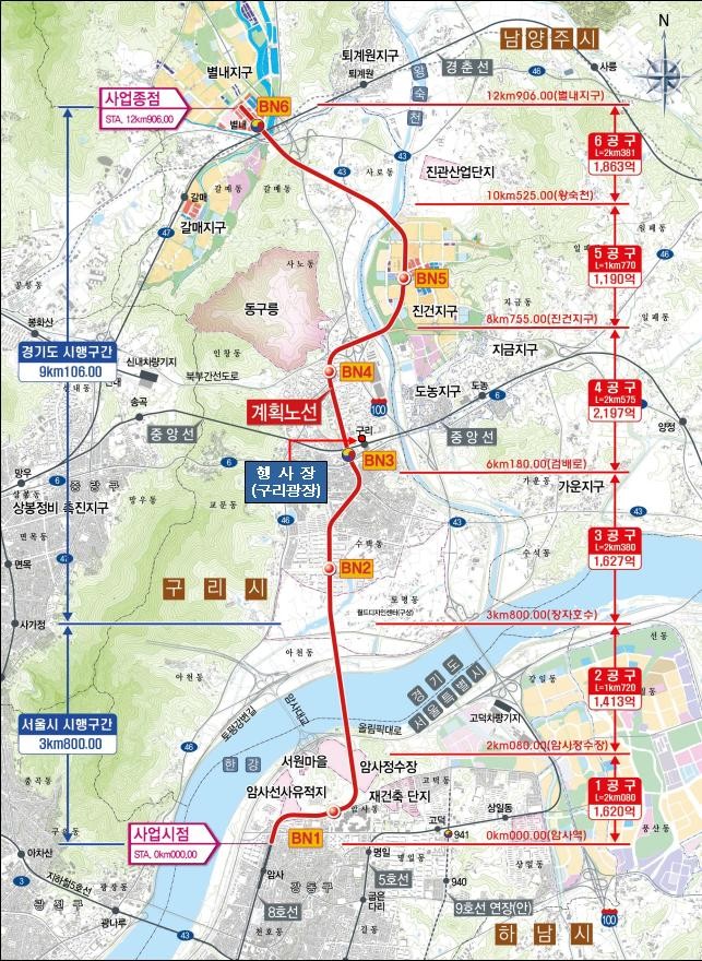 이로써, 서울 8호선 종점인 암사역에서 남양주 별내까지 6개 정거장을 연결하는 총연장 12.9km의 사업이 첫 삽을 뜨게 됐다.