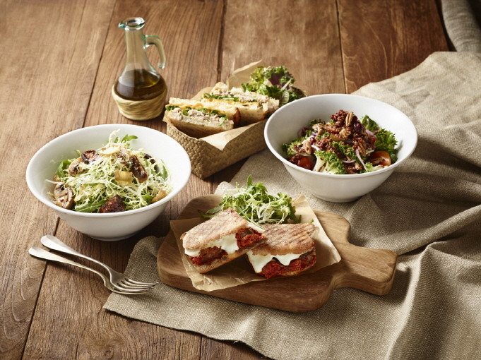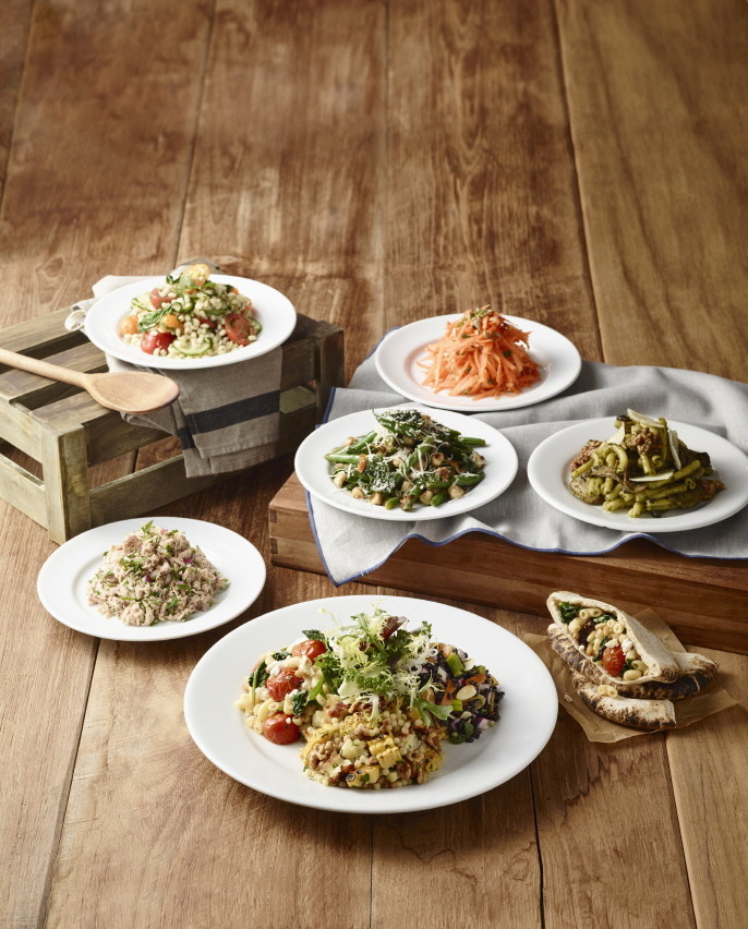 이번에 개편된 메뉴에는 케일, 그린빈스, 바질페스토, 토마토, 해바라기씨앗 등 수퍼푸드(Super Food)를 활용한 샐러드 메뉴 4종을 추가하여 8종으로 확대한 것이 특징이다. 수퍼푸드 샐러드 메뉴 3종을 주문하면 곁들여 먹는 피타빵(Pita Bread)을 함께 제공한다.