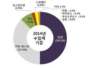 농림축산식품부와 한국농수산식품유통공사는 면류 시장에 대한 ‘2015 가공식품 세분시장 현황‘ 보고서를 발간했다고12일 밝혔다.