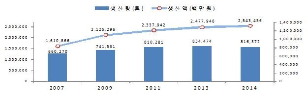 | ▲면류 생산량과 생산금액 © 환경데일리 |