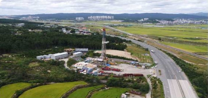 ▲문제의 지열개발에 따른 시추가 이뤄진 현장 모습이다. |