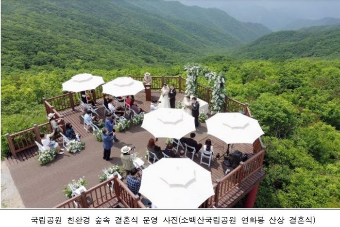 송형근 국립공원공단 이사장은 "국립공원 친환경 숲속 결혼식을 운영해 국민 모두가 국립공원의 우수한 자연을 경험하는 생태복지를 실현할수 있도록 최선을 다 하겠다."고 말했다.