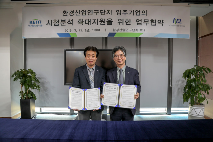 [환경데일리 최진경 기자]한국환경산업기술원(원장 남광희)과 한국건설생활환경시험연구원(원장 윤갑석)은 22일 '환경산업연구단지 입주기업의 시험분석 확대지원을 위한 업무협약'를 체결했다.