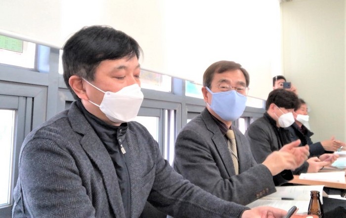 | ▲정의당 고양병 지역구 출마 예정인 박수택씨(파란 마스크 착용)가 선거관련 교육장에 나와 직접 경청하고 깐깐하게 질문을 했다. |