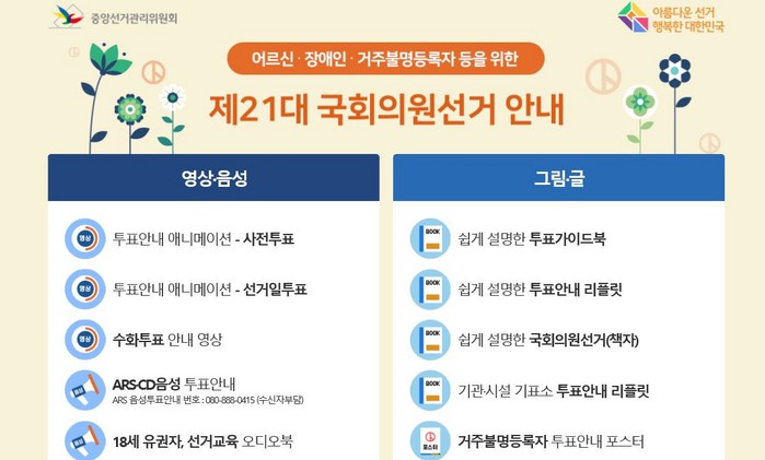 또한 시각장애인들을 위한 선고공보지도 천공방식으로 점자를 활용해 게재하는 것도 의무화했다. 후보자 알림 벽보용 포스터 역시 출마후보 캠프에서 직접 지역별 선거구에 제출해야 한다.
