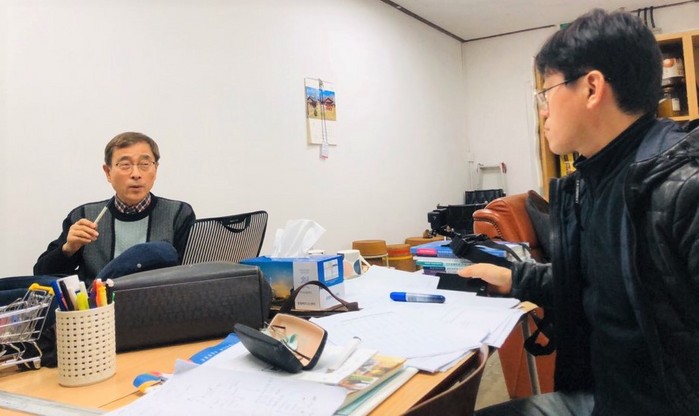 ▲박수택 정의당 고양병 국회의원 예비후보(사진 왼쪽)가 공약정책 위원과 함께 논의하고 있다. |