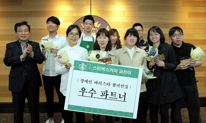이어진 모범 파트너 포상식에서 2010년부터 근무한 장기 근속 장애인 파트너 7명과 우수 근무 장애인 파트너 10명을 비롯, 장애인 바리스타들에 대한 적극적인 코칭과 지원에 모범을 보인 멘토 파트너 등 모두 30명이 선정됐다.