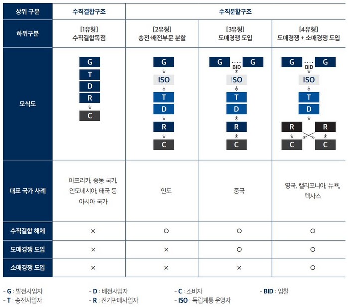 | ▲ 경쟁도입 정도에 따른 전력시장 형태 |