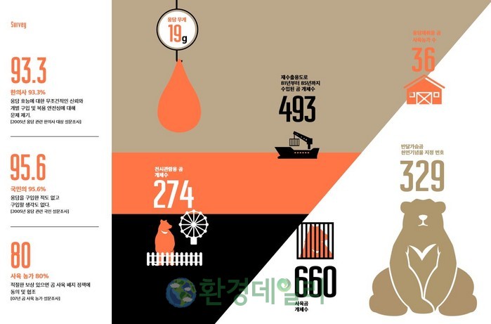 일반 시민들 87.1%가 웅담 채취 목적의 곰사육을 적극 반대하기 때문에 환경부의 좀더 적극적인 노력이 필요하게 됐다.