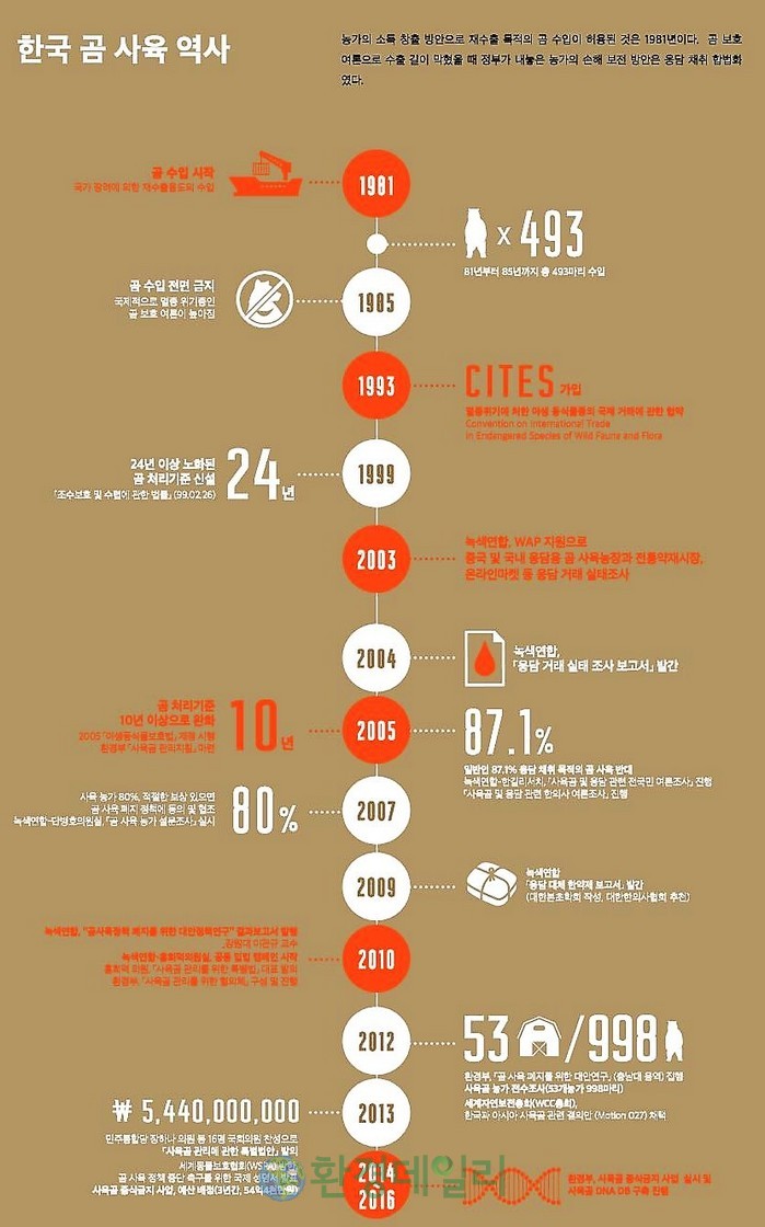 사육곰에 대한 파란만장한 역사를 멈추지 않았다. 국내에 곰이 들어온 지는 1981년 이후 지금까지 사육곰은 끊임없이 자신의 쓸개를 강제로 내주는 불행한 동물중 하나다.