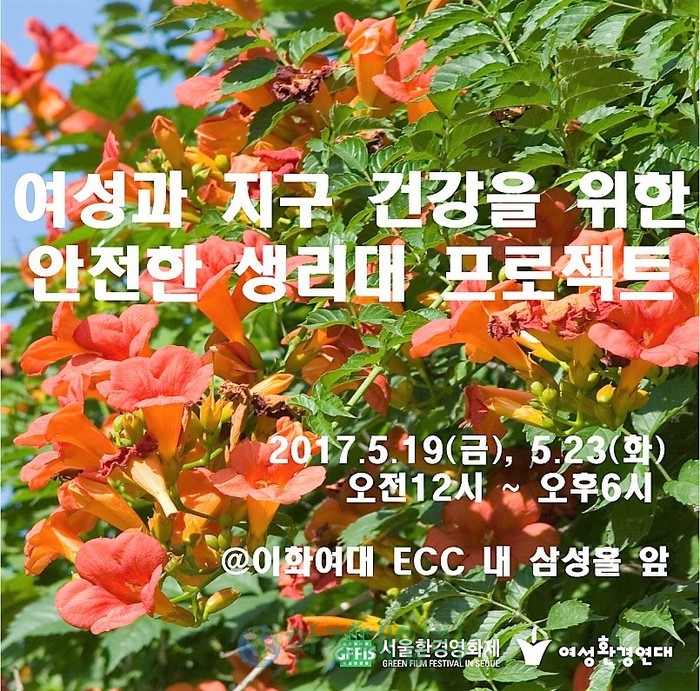 한편 2017 서울환경영화제가 열리는 5월 19일과 23일 이틀간 이화여대 ECC 내 삼성홀 앞 다목적홀에서 '여성과 지구 건강을 위한 안전한 생리대 부스'를 운영한다.