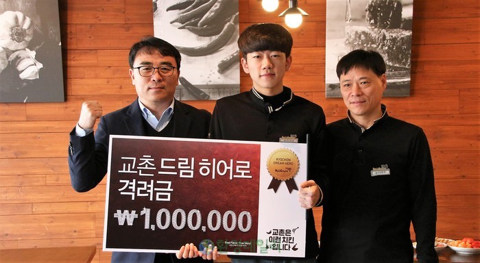 한편 교촌 드림히어로는 지난해 12월 음주운전 도주 차량 검거에 큰 공을 세운 울산 반구 2호점 배달직원의 사연에서 시작됐다. 교촌은 당시 사회의 귀감이 된 배달직원의 용기를 격려하기 위해 격려 장학금을 전달한 바 있다. 이를 계기로 전국 곳곳에서 사회에 이바지하고 있는 교촌 직원들을 체계적으로 격려하고자 '교촌 드림히어로' 제도를 정례화 한 것.