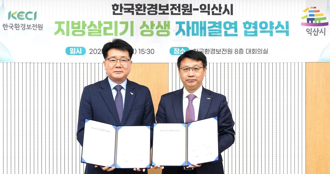 한국환경보전원(원장 신진수)은 27일 서울 성동구 본원에서 익산시(시장 정헌율)와 '지역 상생 및 공동발전 자매결연 협약'을 체결했다.