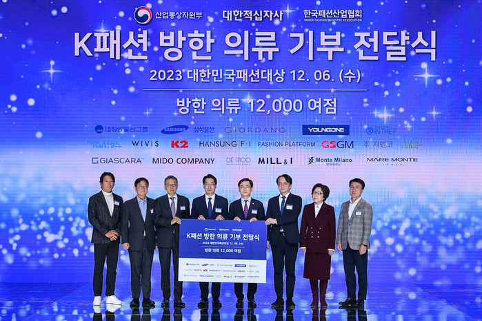 연말을 맞아 취약계층이 따뜻한 겨울을 보낼 수 있도록 K패션 브랜드의 방한 의류를 기부하는 특별행사도 진행됐다.대한적십자사에 지오다노, 영원무역, 삼성물산패션부문, K2코리아, 위비스, 한성에프아이, 패션플랫폼 등 패션기업 19개사 방한 의류 1만2000여점 기부했다.