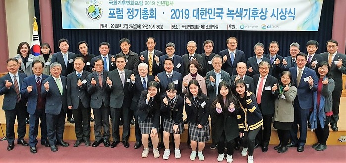 [환경데일리 김영민 기자]범국민적인 기후변화 대응의 정책·입법 거버넌스를 추구하는 국회기후변화포럼 (대표의원 홍일표, 한정애)은 26일 오전, 국회의원회관에서 포럼 정기총회와 더불어 '2019 대한민국 녹색기후상 시상식'과 포럼 정기총회를 개최했다.