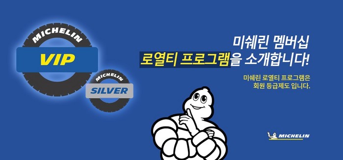 미쉐린 타이어를 연간 7개 이하 구입한 고객들은 기본 실버 등급에 해당되며, 연간 8개 이상 구입한 고객들은 VIP 등급이 돼 다양한 혜택을 누릴 수 있다. VIP 혜택에는 공식 서비스 인증 대리점에서 위치교환, 얼라인먼트, 발란스 등의 서비스 이용 시 사용할 수 있는 2만원 상당의 미쉐린 서비스 쿠폰을 비롯해 타이어 구입 시 사용할 수 있는 생일 축하 기념 1만 포인트, VIP 등급 스티커 및 미쉐린 소식지인 '미쉐린 투게더' 등이 포함돼 있다.