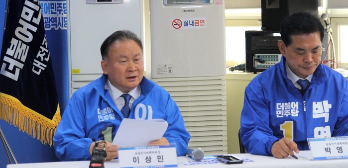이상민 후보(대전 유성을)는 2일 4.15 국회의원 선거 공식 선거운동 첫날인 2일 공동선대위원장단과 함께 대전시당 회의실에서 '대전시민 여러분께 드리는 글'을 발표했다.