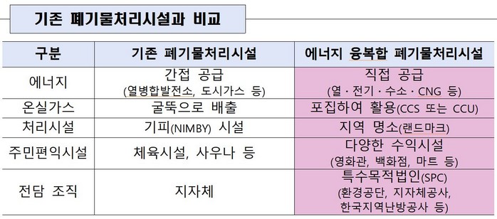 에너지 융복합 폐기물 처리시설은 단순 폐기물 처리시설이 아닌 에너지 생산기지(전기‧열‧수소 등)로서 주민과 이익을 공유하고, 주민 선호시설과 연계를 통한 지역 명소로서 변모를 도모한다.