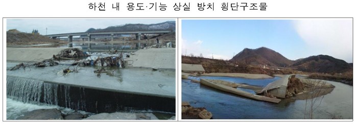 하천의 물리적 환경은 수질·수량·수생태계 관리의 바탕이나, 농업·경관용 보 등 횡단구조물의 지속 증가로 연속성이 단절 방치돼왔다. 국내 하천의 횡단구조물 수(3만3893개, 1.14개/km)는 유럽연합(EU) 주요 국가(독일 0.5개/km)에 비해 높다. 이렇다보니, 과도한 횡단구조물은 하천 고유 기능을 저해해 물환경 관리에 악영향을 미쳤다. 수질역시, 하천 대부분에서 수체 면적 감소로 육역화 진행, 농업용 보 등 정체 수역에서 오염퇴적물 증가, 매년 부영양화 및 녹조가 일어났다. 더 심각한 것은 어류 이동 제한, 배스 등 정수성 어종 증가로 수생태계의 교란이 멈추질 않았다.