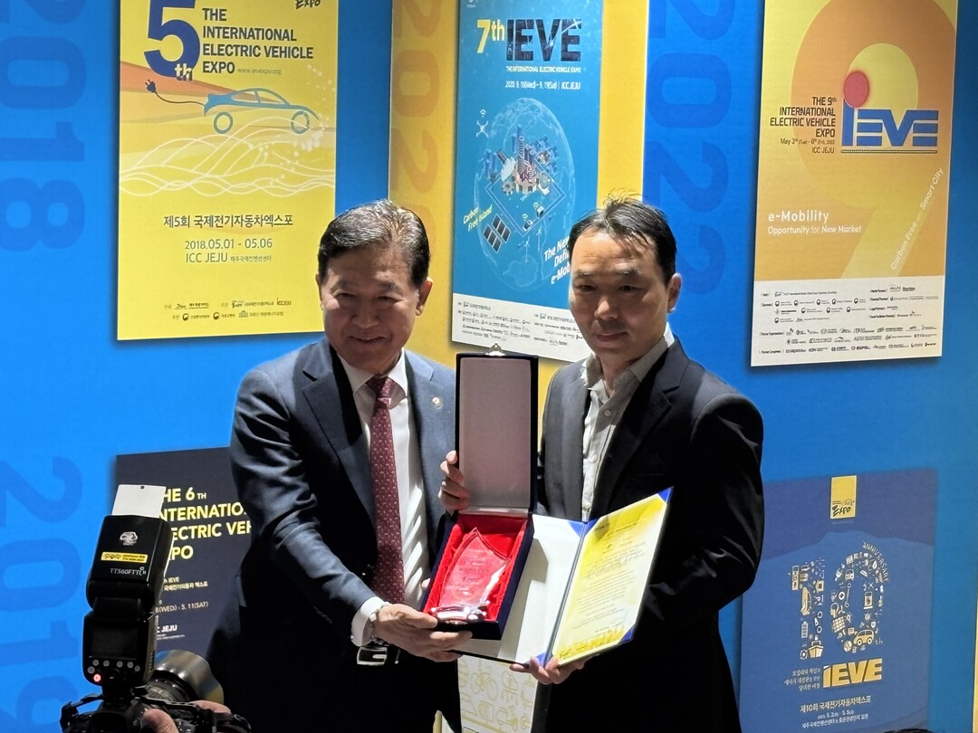 이른 국제 기류에 편성해 제13회 국제e모빌리티엑스포 조직위원회는 24일 제주 신화월드에서 '2026 IEVE Innovation Award'수상 기업으로 선정됐다.