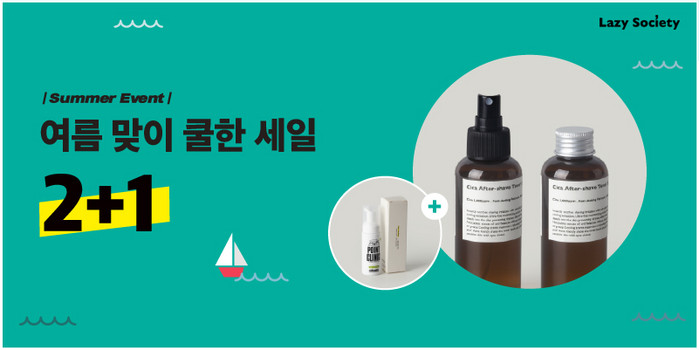 7월 15일부터 진행되는 '여름 맞이 쿨한 세일 2+1 프로모션'은 레이지 소사이어티 스토어팜에서 만나볼 수 있으며, 시카 애프터쉐이브 토너 스프레이 2개(1만5000원)을 구매하면 1만5000원 상당의 브로앤팁스 남성청결제를 무료로 받을 수 있다.(제품 소진 시 까지)