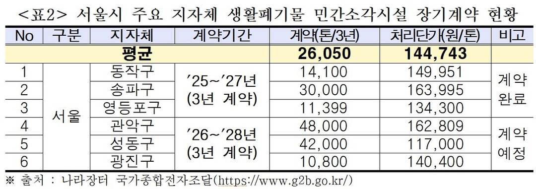 ′25년도 수도권매립지 생활폐기물 반입단가와 비교가 된다.