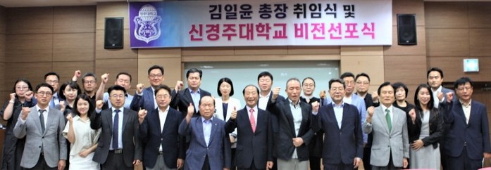 [환경데일리 고용철 기자]김일윤 원석학원 설립자의 경주대 총장직무대리 취임을 함께 신경주대학교 비전선포식이 거행됐다.