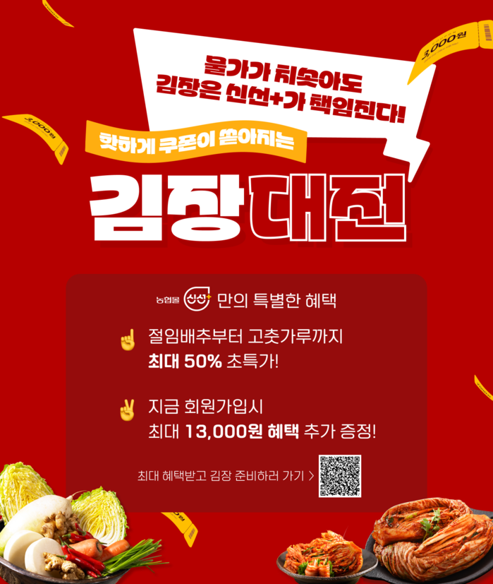 이외에도 농협몰 신선플러스는 신규가입 고객을 대상으로 8000원, 앱 설치 시 5000원 할인쿠폰을 제공하며, 11월 22일 김치의 날 특집 라이브커머스를 진행하는 등 고객 쇼핑 편의를 강화할 계획이다.