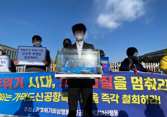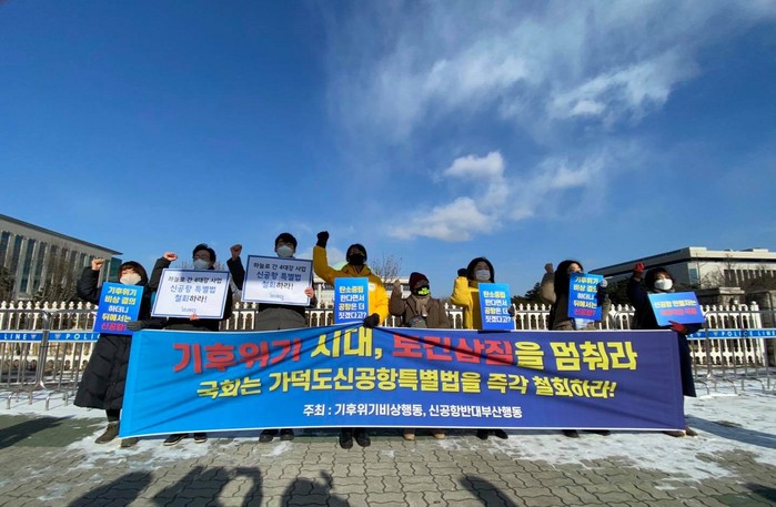 특별법안은 기후위기 피해자와 지역주민 등 다양한 이해당사자의 의견수렴과 공감대 형성을 무시하는 편의주의와 일방주의를 기반으로 하고 있다. 더욱이 생물다양성의 보고이자 중요한 탄소흡수원인 자연환경마저 심각하게 파괴할 것. 특별법안은 전 세계적인 항공부문 배출 감축 운동과 제도 변화를 간과한 시대착오적인 시도라며 강하게 비판했다.