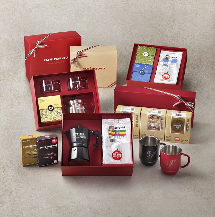 파스쿠찌는 집에서 간편하게 커피와 차를 즐기는 '홈 카페' 트렌드에 맞춰 홈 브루잉 용품부터 간편하게 즐길 수 있는 드립커피백, 모카포트, 티백 등으로 구성한 다양한 선물세트를 준비했다.