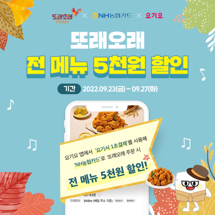 농협 목우촌의 치킨 프랜차이즈 '또래오래'는 27일까지 배달 앱 요기요에서 NH농협카드 결제고객 대상 할인 이벤트를 진행한다.
