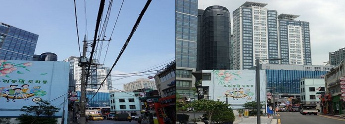 [환경데일리 이수진 기자]도시미관을 해치고 위험성까지 노출돼 있는 전선, 통신선 모두를 땅 속으로 집어 넣었다.