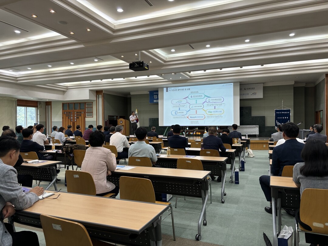 세 번째로 경기환경에너지진흥원 소개는 나지훈 대기물산업지원팀장이 진흥원에 대한 추진 프로젝트 사업 등을 소개했다.