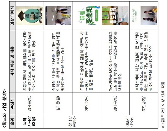 학교와 기업 분야는 초등학교 안에서 녹색제품을 찾는 모습을 담은 '비밀 열쇠를 찾아서'(김새봄 팀)가 차지했다.